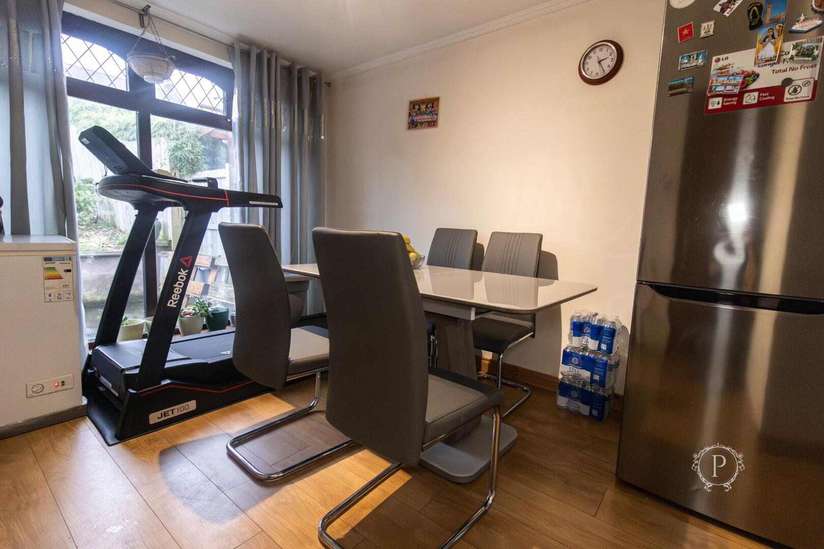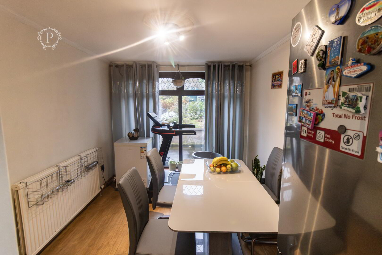 Adjacent to the kitchen and accessible from both the kitchen and the living room is the dining room, which is positioned to the rear of the property. This versatile space comfortably accommodates a dining table and chairs, making it perfect for family meals, entertaining, or hosting guests. The rear aspect ensures a bright and pleasant atmosphere, while its connection to both main living areas enhances flow throughout the ground floor. The presence of a dedicated dining area adds flexibility and a clear sense of separation between living and cooking spaces.