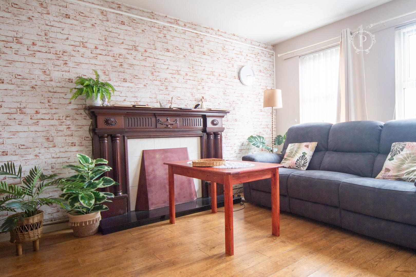 The living room is generously proportioned and designed with both comfort and functionality in mind. A feature fireplace with decorative surround creates a natural focal point within the room, adding character and warmth, while the wooden flooring enhances the overall aesthetic. Large window openings allow natural light to flood the space, creating a bright and relaxing environment ideal for everyday living as well as entertaining guests. The room offers ample space for a variety of furniture layouts, making it a versatile and highly usable living area.