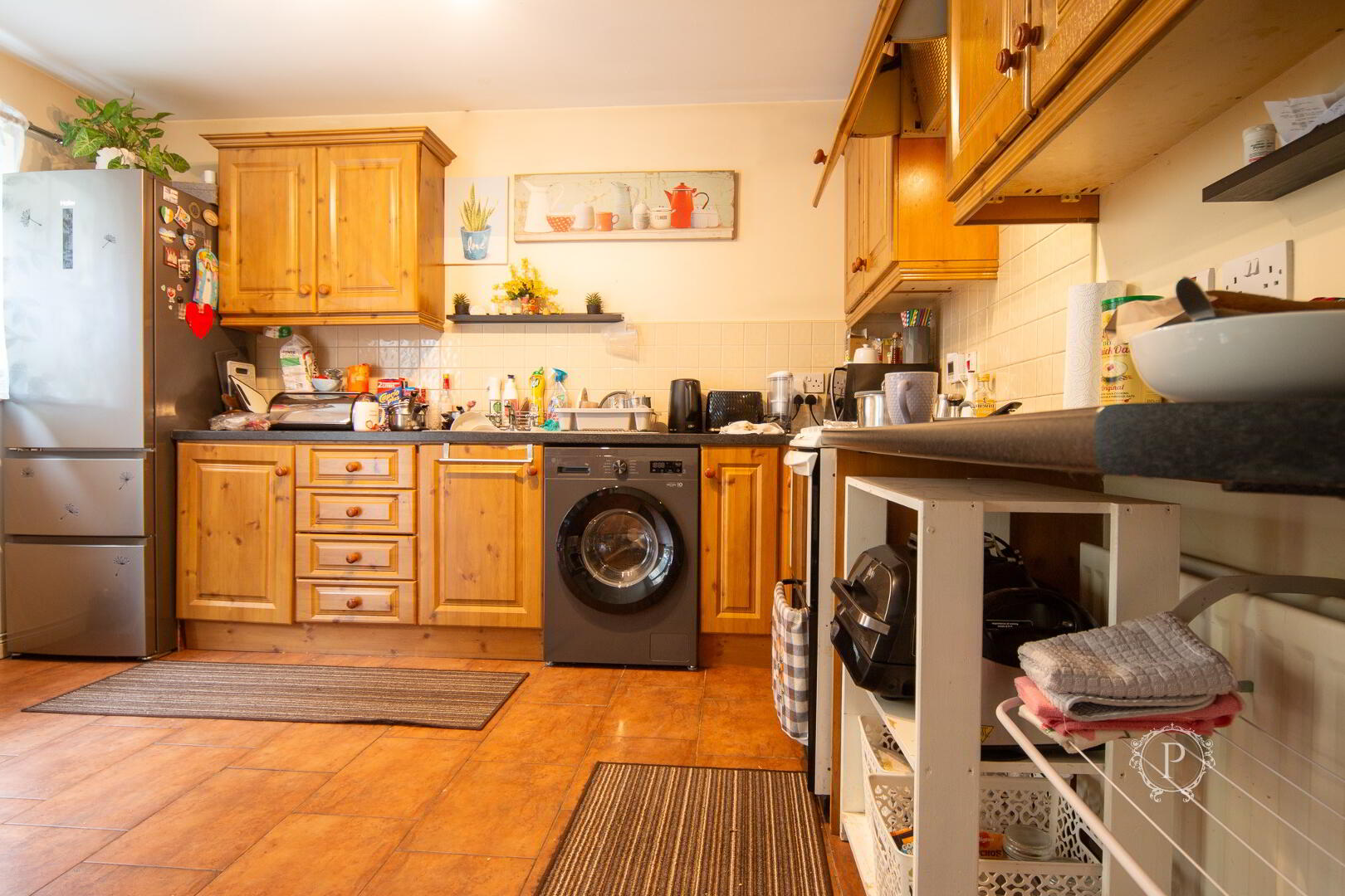 To the rear, the kitchen provides a highly functional and well-laid-out space fitted with a range of high and low-level units, offering excellent storage and preparation space. The layout comfortably accommodates dining, making it an ideal hub of the home for family life and day-to-day living. Finished with tiled flooring for ease of maintenance, the kitchen benefits from good natural light and direct access to the rear garden, further enhancing its practicality and connection to outdoor space.