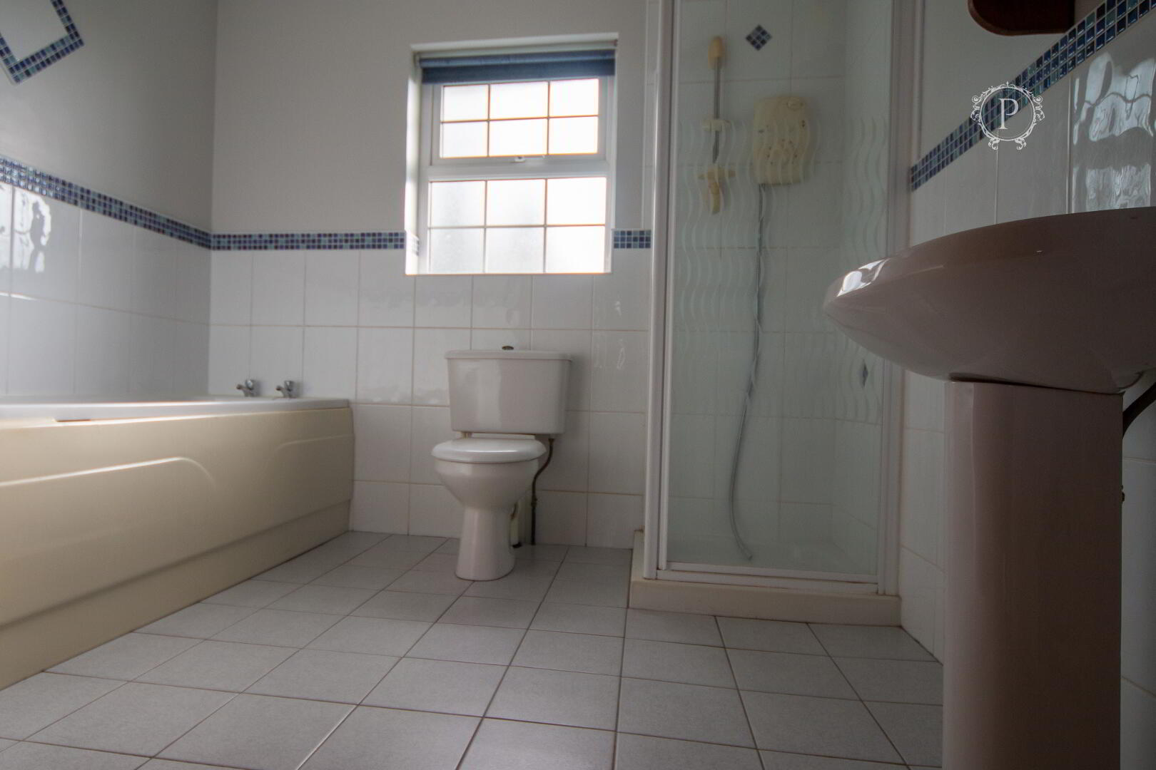 The main bathroom, located to the rear of the property and adjacent to the hot press, is a bright, well-proportioned space that offers both comfort and excellent future potential. Naturally lit by a rear-facing window, the room enjoys a calm, private feel, making it a peaceful retreat for daily routines.