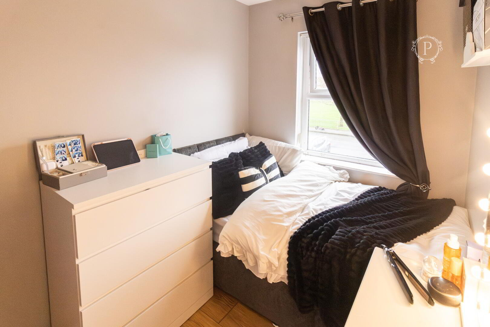 The master bedroom is the largest of the three rooms and offers a comfortable and private retreat. The space easily accommodates a double bed along with wardrobes and additional furniture. Natural light enhances the room’s warmth, while the overall proportions ensure it functions as a well-balanced and practical principal bedroom.