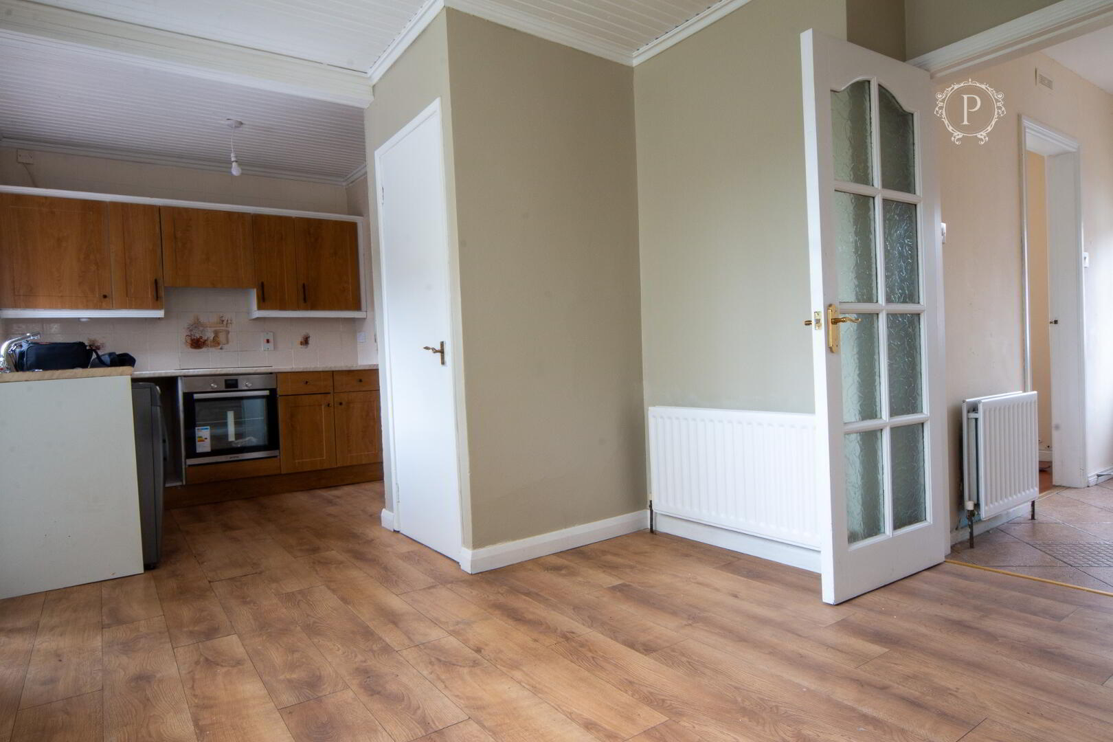 Upon entering the home, you are welcomed by an entrance hallway with staircase leading to the first floor. The ground floor benefits from a bright and inviting living room featuring warm wooden flooring and a decorative fireplace, creating a cosy focal point within the space. Glazed double doors lead through to the rear of the property where the layout opens into a spacious kitchen and dining area. This room provides ample space for both cooking and dining and is fitted with a range of high and low level units, an integrated oven and space for additional appliances, with natural light flowing through the large window.