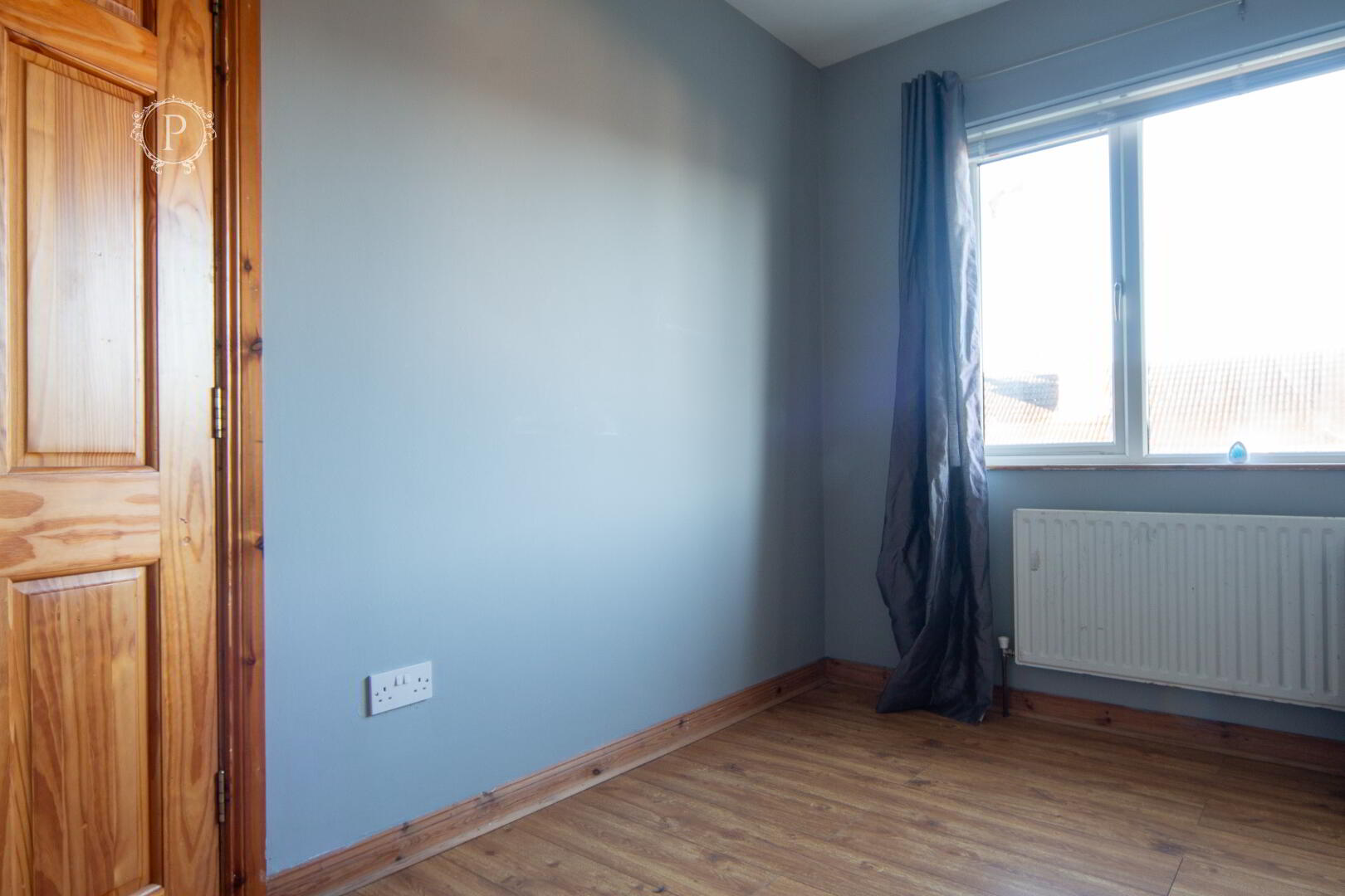 Well-proportioned ground floor bedroom featuring laminate flooring and a large window, allowing natural light to flood the room. This versatile space is ideal for a guest bedroom, home office or ground-floor living, with a radiator and ample power points completing the room.