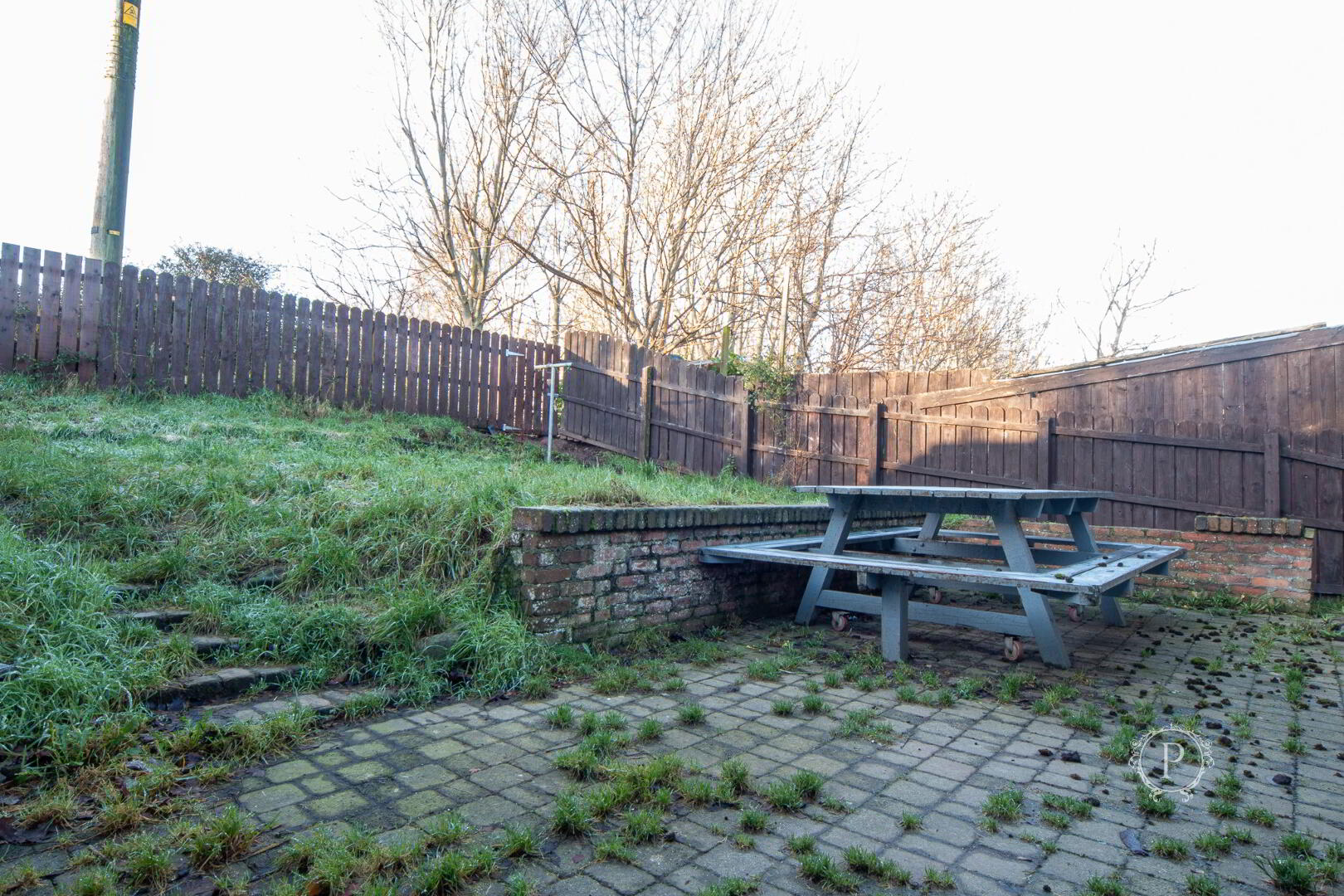 To the front, the property benefits from a private driveway providing off-street parking, leading to a detached garage offering excellent storage or workshop potential. A lawned front garden enhances kerb appeal, with pedestrian access to the main entrance. To the rear, the property enjoys an enclosed garden area with a paved patio space, ideal for outdoor seating and entertaining. The garden is bordered by fencing for privacy and includes an elevated lawned area, providing a pleasant and versatile outdoor space. Access to the garage is also available from the rear, adding further practicality.